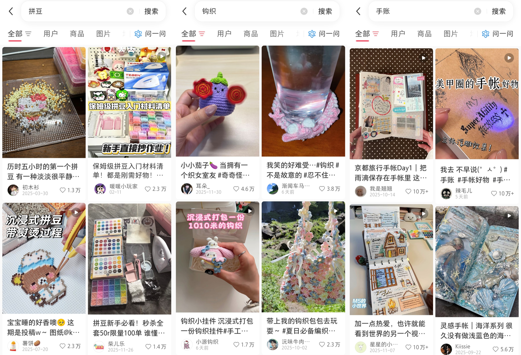最近,如果你刷过小红书、逛过周末市集,大概率会被一种慢吞吞的热闹包围。地铁口支着小桌的拼豆摊前围满低头扣豆子的年轻人,咖啡馆有钩织爱好者包场举行“织女聚会”,手账er们聚在一起交换贴纸、比拼排版……这些手工项目正以意想不到的速度重返大众生活。
