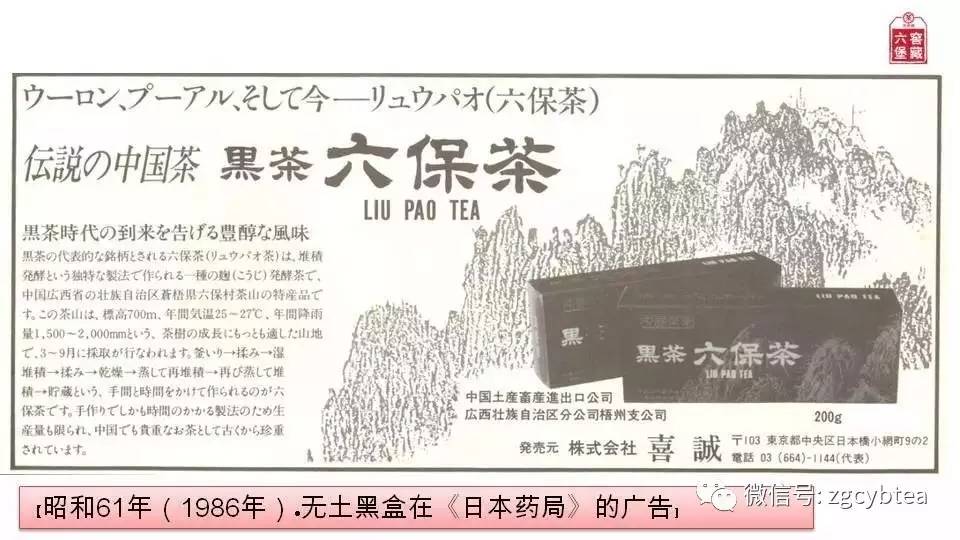 而这种论证也不是没有。远点的,广西梧州茶叶进出口公司(现梧州中茶)生产的黑盒六堡,上世纪80年代作为健美瘦身茶风靡日本,当时日本学界对其功效的科研成果便是最大推动力。