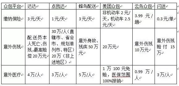 如:点我达平台规定骑手当天有接单记录,每人每天需扣除1元的保险费用,最高能获得30万余人身意外保险和每人3万元的意外医疗保险;在达达平台,记者发现骑手每天接单需要付3元的保险最高能获得20万元人身伤害险和4万元的意外医疗险。