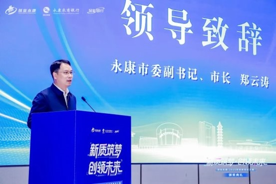 永康市委副书记、市长郑云涛在致辞中向大赛中取得优异成绩的团队和个人表示祝贺。他指出,永康因改革而兴、因创新而强,当前正处在转型升级、跨越发展的关键时期,比以往任何时候都更加渴求创新、重视创业。市委、市政府将坚定不移实施创新驱动发展战略,全力打造一流创新创业生态,诚挚邀请广大科创精英扎根永康、深耕永康,将比赛的智慧结晶转化为现实生产力,在市场的浪潮中勇立潮头,与永康共同书写五金产业高质量发展新篇章。