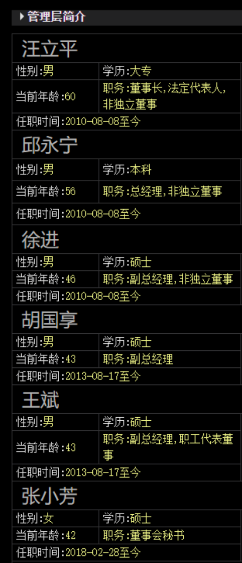 公开信息显示,恒立液压总经理邱永宁、副总经理徐进均在公司2011年上市前的2010年8月就已任职,另两位副总经理胡国享、王斌也在2013年8月到岗;即使进入公司较晚的董秘张小芳,自2018年2月28日任职至今也已有8年。