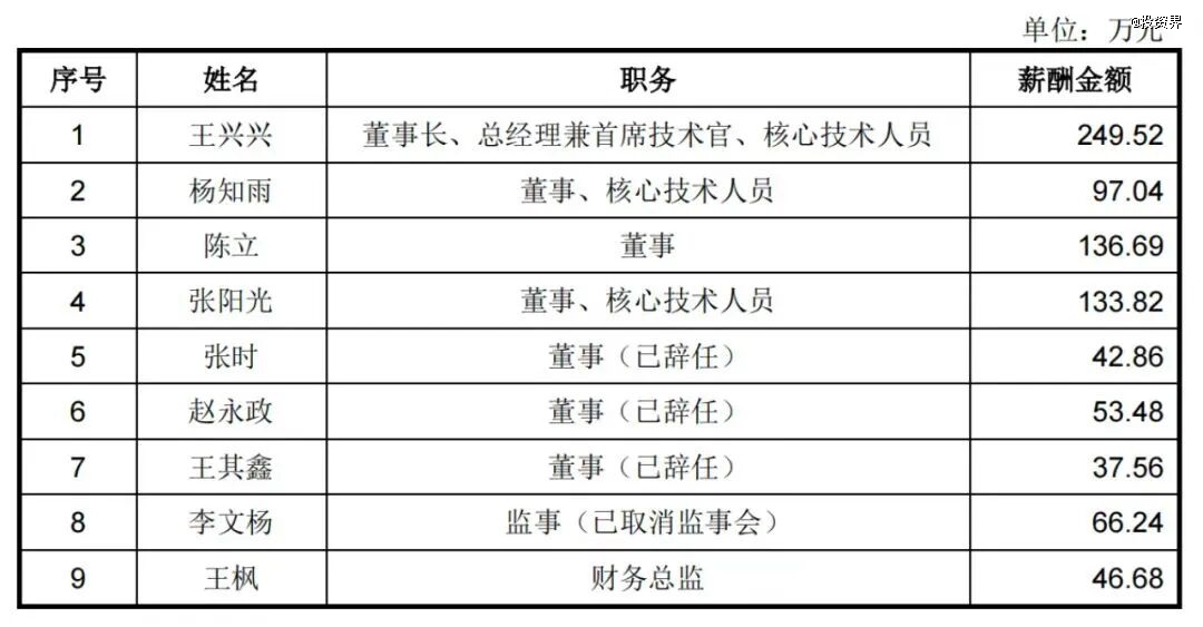 员工也在翘首以盼。招股书中披露,宇树总员工人数为480人,核心技术人员多为90后,9位高管全年薪酬总计863.89万元,其中王兴兴年薪249.52万。