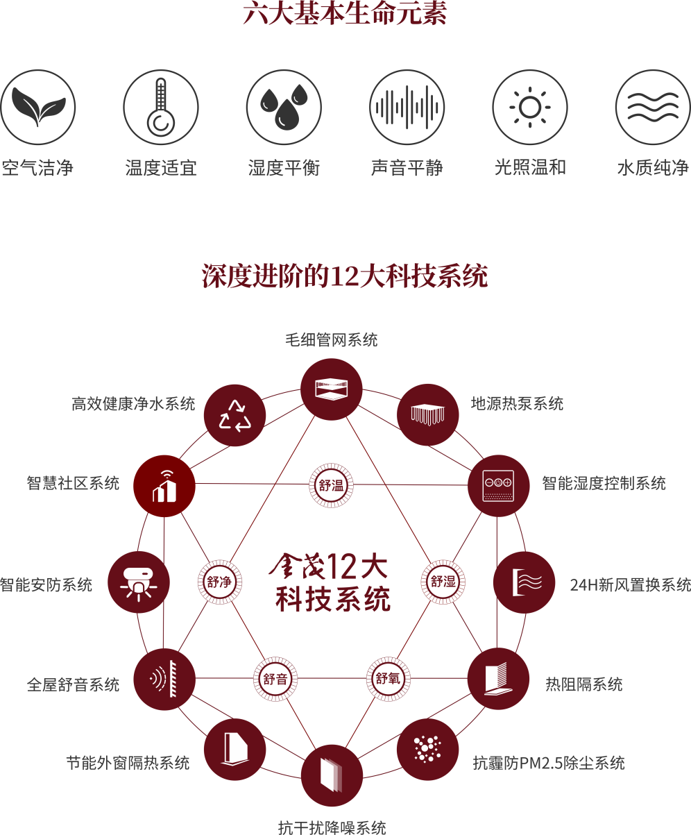 金茂以十二大绿金科技系统,围绕阳光、空气、水、声音、湿度、温度六大生命元素,打造舒温、舒湿、舒氧、舒净、舒音五舒体验,让业主在玻璃幕墙与露台环抱中,依然享有四季如春的舒适。在奥体,金茂坚守居住本质,用科技守护健康,重新划定西安改善住宅的价值标准。