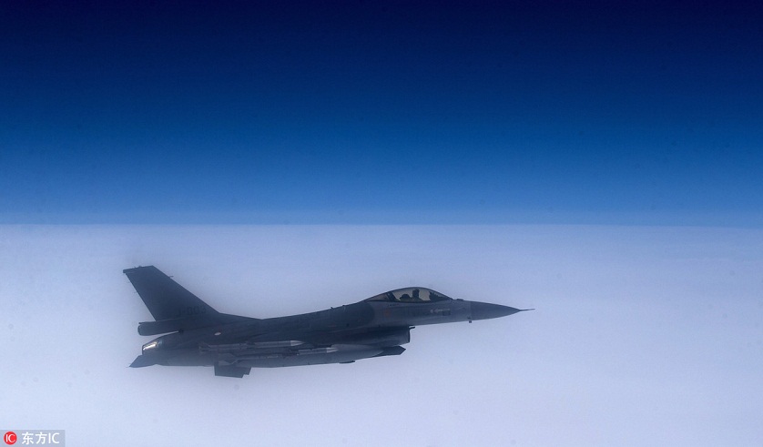 周三俄罗斯国防部下属电视台播放的一段视频显示,一架F-16战斗机在距离绍伊古飞机很近的空中与之并列飞行。但目前还不知道这架飞机具体属于北约哪个国家。