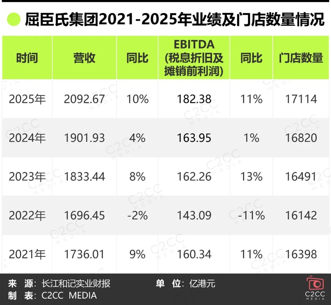 财报显示,2025年屈臣氏集团全年营收达到2092.67亿港元,同比大涨10.03%;EBITDA(税息折旧及摊销前利润)为182.38亿港元,同比增长11.24%,利润增速甚至跑赢了营收增速,盈利能力稳步提升。