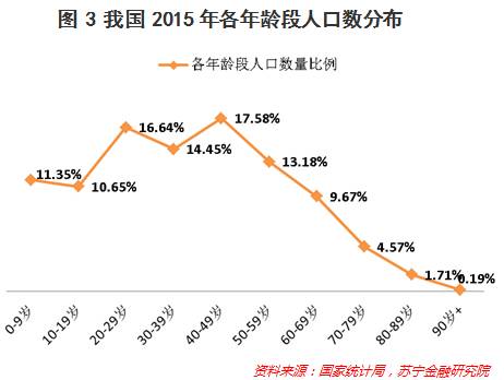 一方面,我国人口结构正在经历刘易斯拐点,人口红利逐渐消失。国家统计局的统计数据显示,我国2015年的人口数分布存在两个峰值,一个在25岁左右,另一在45岁左右,如下图3,而消费者的年龄段主要集中于25岁至45岁之间,这两个年龄段的重合使得社会购买力整体稳健温和。这种背景下,商家已不再是十几年前以“数量”取胜的思路,而是更倾向使用优化质量、提升客单价的手段保证盈利稳定与增长,这是消费升级的外因。