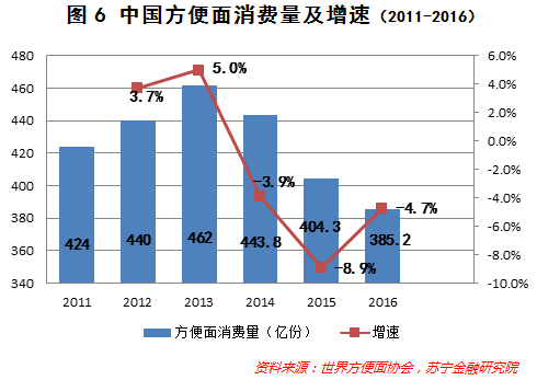 2、绿色食品和休闲零食:2013年我国方便面消费量达到峰值,之后逐渐下降至今,这体现出消费者对食品品质(健康、安全)的要求越来越高,如下图6。同时,一批注重体验、社交与分享的消费新品牌如三只松鼠、百草味等,快速走红,引发消费者追捧。行业内相关优质公司的股票值得关注。