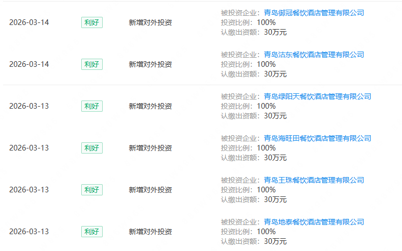 这些酒店原本属于青岛市胶州宾馆(持股90%)和青岛上合城乡融合发展集团有限公司(持股10%)。这种股权变动属于当地国资内部的资产整合和梳理。