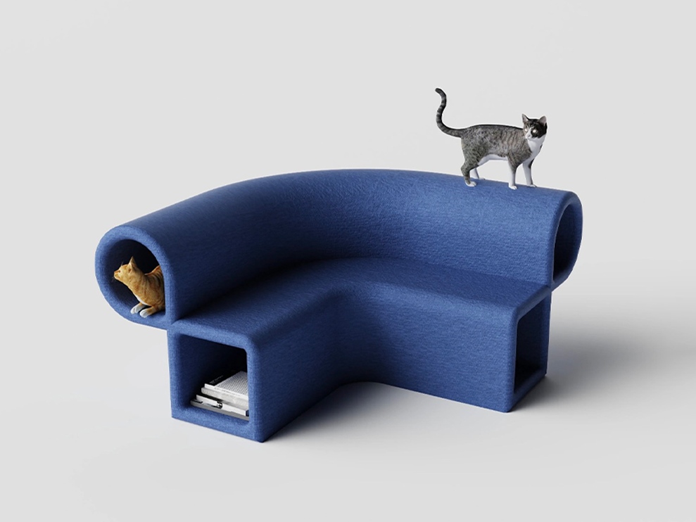 比如,家居设计工作室SUNRIU Design Studio探索人宠共用家具,其结合猫的日常习惯、动线以及人的居家需求,让家具实现不仅人可以舒适躺坐,猫咪也可以在其中探索、玩耍或休息。部分家具材料采用可回收环保材料制成,在更换和清洗上也会注重便捷性。