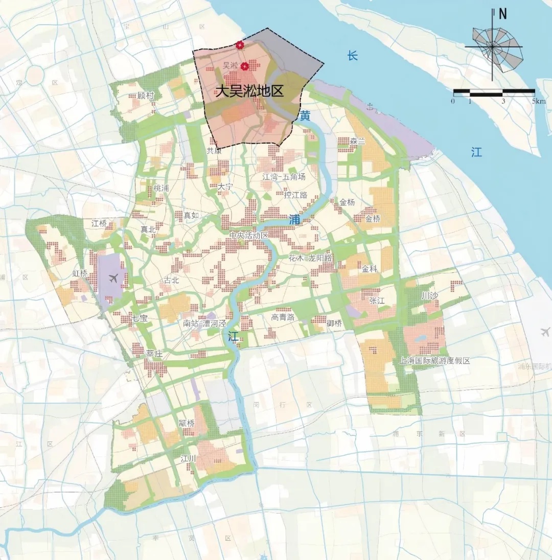 大吴淞规划定位“三江交汇、上海之门”,雄踞黄浦江、蕰藻浜、长江三大河流交汇处,总规划面积约110平方公里,横跨宝山、静安、杨浦、浦东四区,是上海城市转型的核心战略板块;而吴淞创新城作为上海2035总体规划确定的城市副中心,地处上海北部门户,总面积约26平方公里,位列主城区范围,更是大吴淞规划的核心引擎。