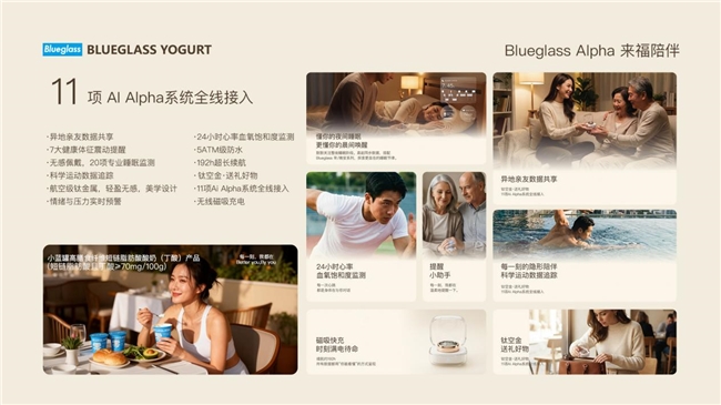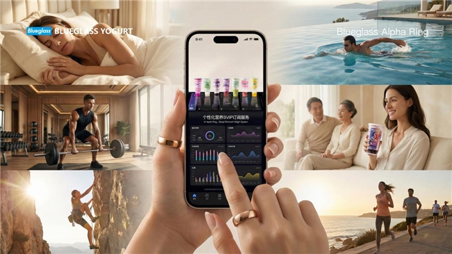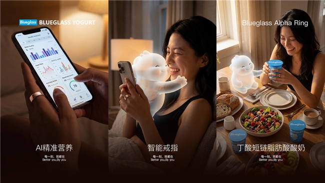 Blueglass正在形成由AI精准营养系统、Alpha Ring智能戒指、丁酸短链脂肪酸酸奶产品体系,以及医疗资源链接能力共同构成的新一代健康管理闭环。