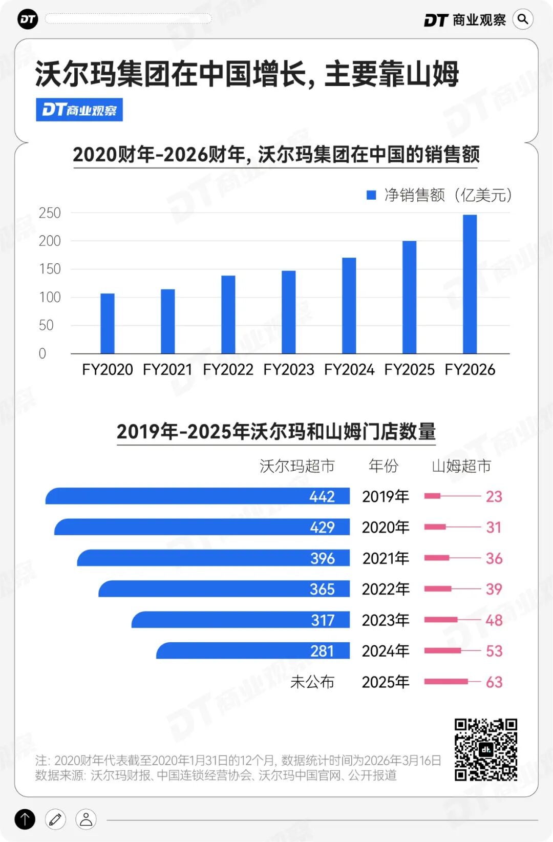 世纪华联、永辉、华润万家、沃尔玛,这些大卖场模式的商超,过去几年都在收缩、关店,而沃尔玛集团在中国的增长,主要靠山姆不断开店。