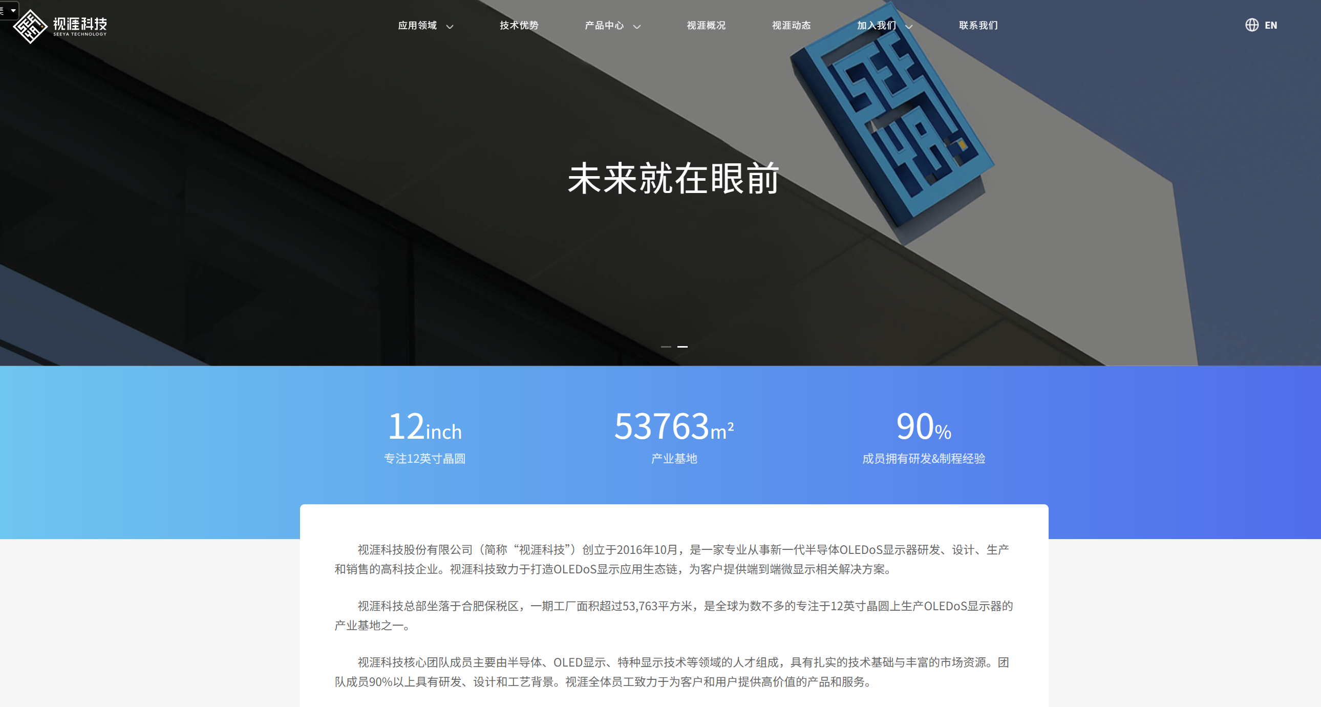 据视涯科技股份有限公司官网信息显示,该公司创立于2016年10月,总部坐落于合肥保税区,是一家专业从事新一代半导体OLEDoS显示器研发、设计、生产和销售的高科技企业,致力于打造OLEDoS显示应用生态链,为客户提供端到端微显示相关解决方案,同时是全球为数不多的专注于12英寸晶圆上生产OLEDoS显示器的产业基地之一。