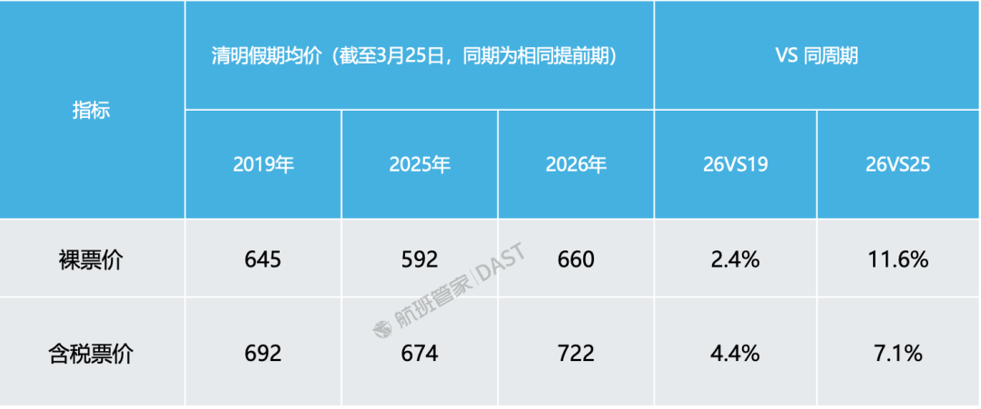 清明假期机票价格同比增长11.6%。