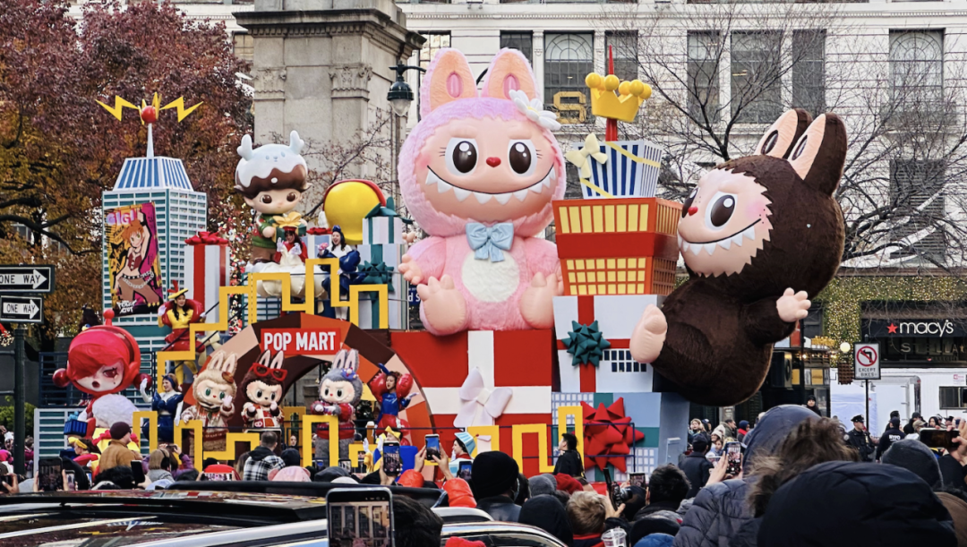 2025年11月,泡泡玛特携旗下LABUBU、SKULLPANDA等IP参与美国纽约梅西百货感恩节大游行 图源:泡泡玛特官网