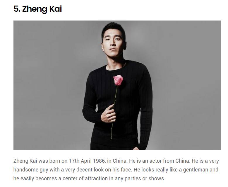 我们先不说这份榜单把陈赫放在那么高的位置会引起多少家粉丝来撕,单说网站把郑凯的照片放成这样