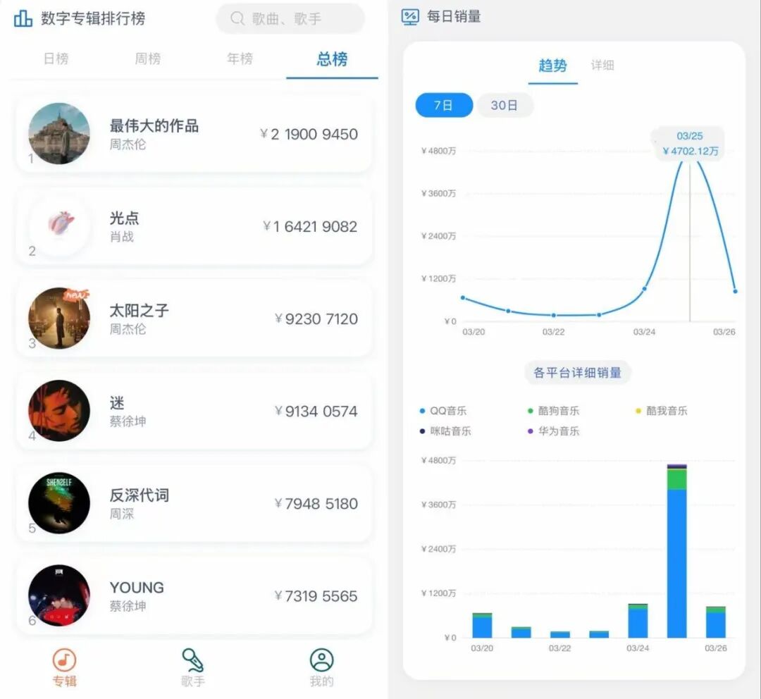 相较于数字专辑的亮眼数据,实体专辑的热度更具行业意义。