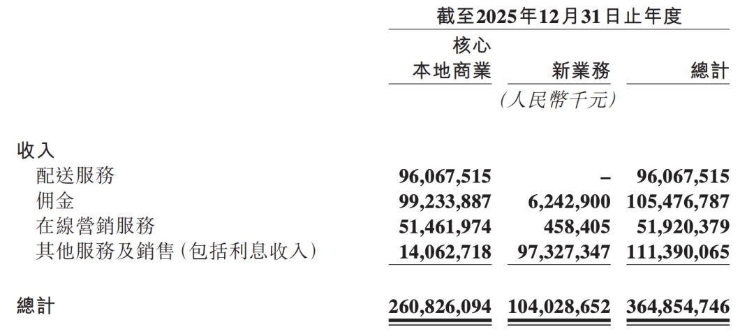 从收入结构看,2025年美团配送服务收入为961亿元,同比下降2.0%,年报归因为竞争激烈、营销及推广力度加大。