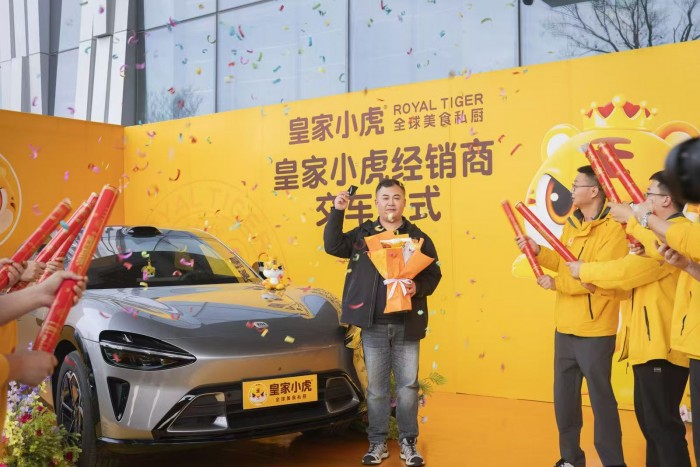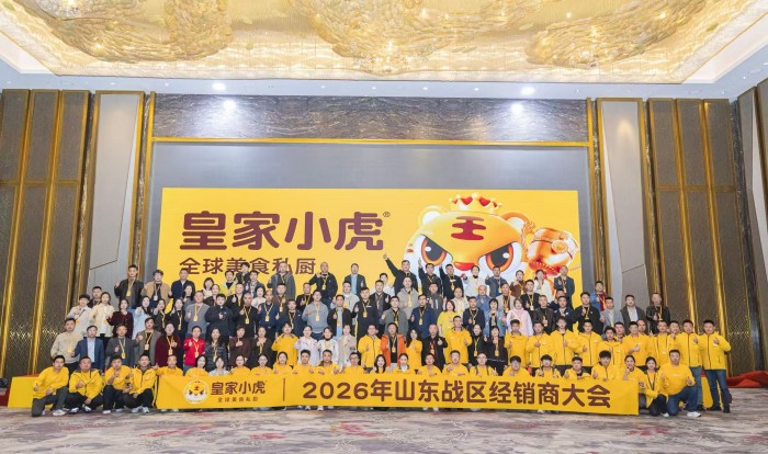 2026年春暖花开之际,刚刚获得多项福布斯全球大奖的全球美食私厨皇家小虎动作频频。3月24日,山东泰安,皇家小虎2026年山东战区经销商大会隆重举行,活动现场百强经销商抽奖,将崭新的小米YU7当天开回家;同一周的3月26日,一年一度全国食品饮料行业最大的盛会“春季糖酒会”在四川成都隆重开幕,皇家小虎作为速冻食品行业的“黑马”,受邀参展并占据了展厅C位。展台现场人头攒动,生意洽谈、产品品鉴、品牌介绍,人流来往络绎不绝,气氛热烈,成果显著。