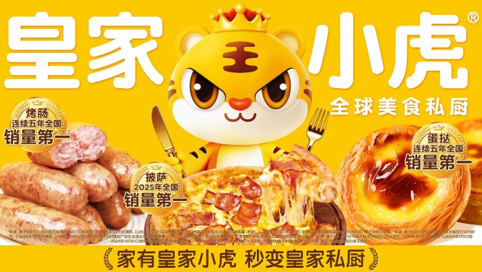 全球美食私厨皇家小虎,是集研发、生产、销售于一体的头部食品企业,致力将全球美味带进家庭餐桌,和用户做朋友。作为速冻食品全网销量第一品牌,旗下烤肠、蛋挞连续五年全国销量第一,披萨2025年全国销量第一,鸡排、手抓饼等产品也深受用户喜爱。凭借卓越的产品力及品牌力,皇家小虎连续斩获了“福布斯2026卓越标杆工厂”、“福布斯2026年度价值品牌”等多项荣誉,已成为数亿家庭信赖的新国民品牌。2025年,皇家小虎全渠道终端零售额超40亿元。家有皇家小虎,秒变皇家私厨!