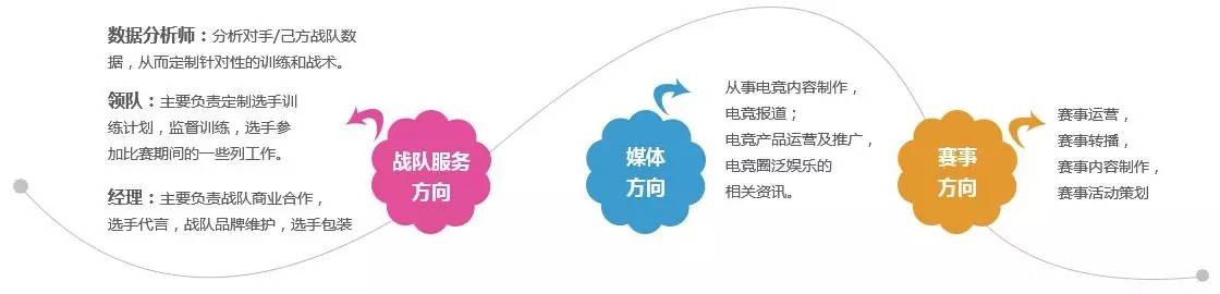 还要强调的是,做电竞不是做职业选手或者主播,这两个是很难做的,大部分人都不适合走这一道路。电竞虽然是一个高速发展的行业,但做任何事都不可能一蹴而就,需要一个学习积累的过程。