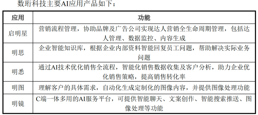 恒为科技主要为为运营商网络、信息安全、国产信息化、工业互联网、行业智能和智算中心等领域提供产品和解决方案。而标的公司数珩科技主要聚焦AI技术的在企业应用场景的落地,为快消、汽车、金融、教育和人力资源等行业客户提供人工智能应用软件、解决方案与服务。