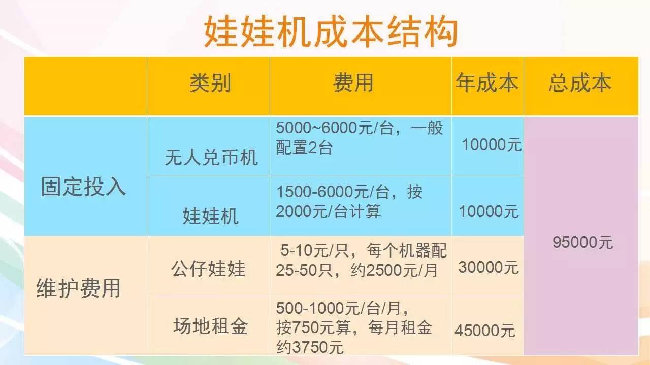 娃娃机的购买成本并不高,淘宝上千元出头就能买到,加上各种配套设施和运维费用,五台娃娃机的直接成本不到10万元,半年时间就能收回成本,到年底还有10万元利润。