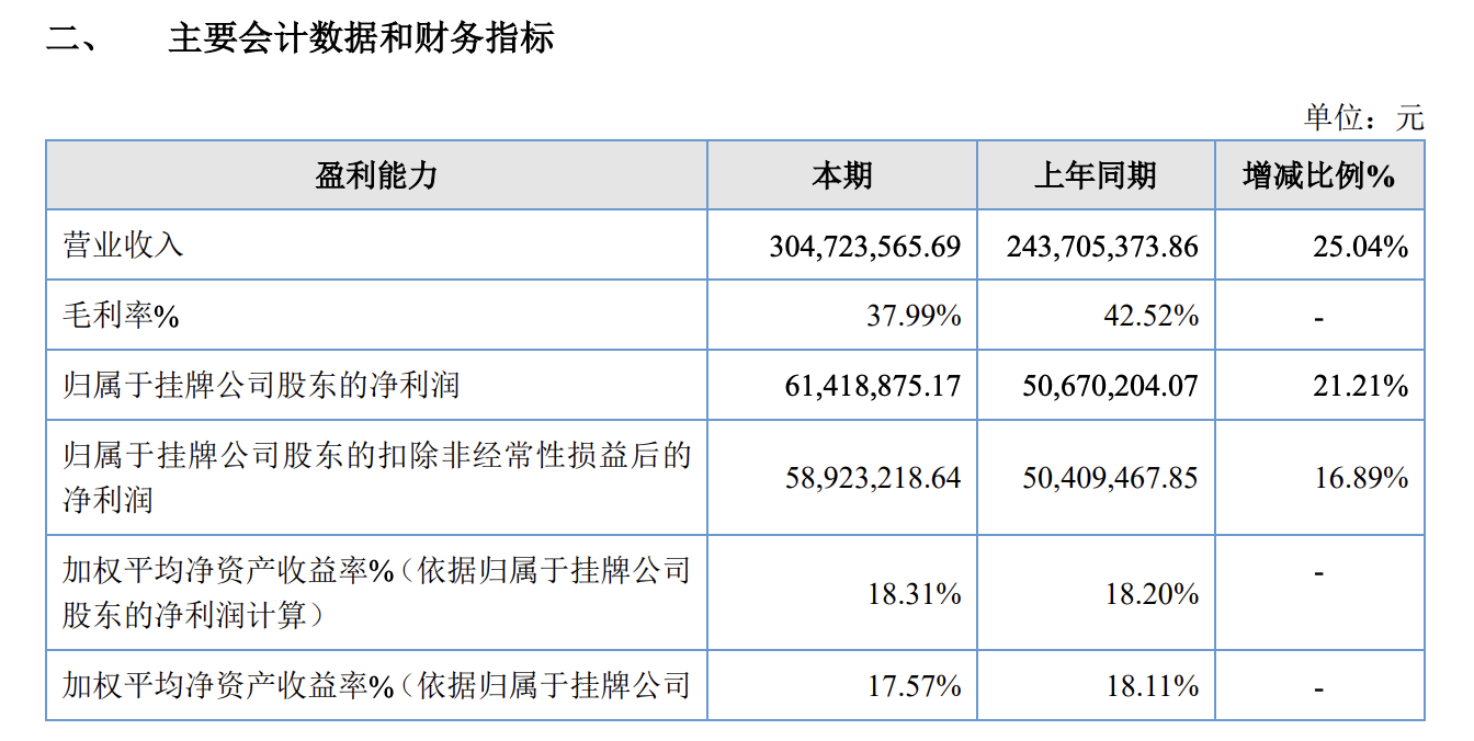 财报显示,2025年公司实现营业总收入3.05亿元,同比增长25.04%,创下近年营收规模新高;归母净利润达6141.89万元,同比增长21.21%;扣非后净利润为5892.32万元,同比增长16.89%。