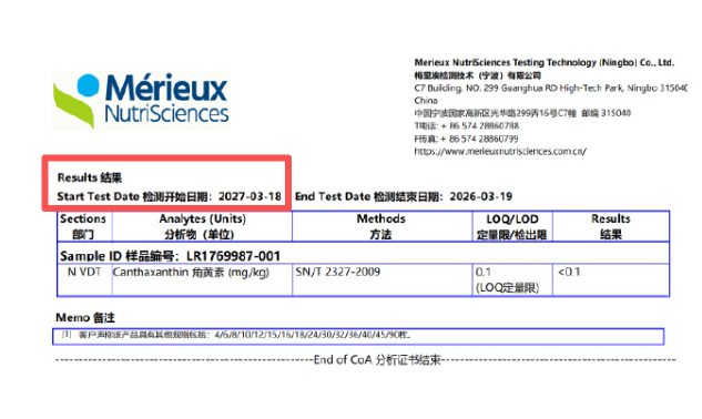 近日,黄天鹅在官方微博发文称,有细心网友发现,公司发布的由梅里埃检测技术(宁波)有限公司出具的No.3093200分析证书显示“检测开始日期为2027年3月18日”。公司第一时间联系该检测机构,经核实,系该机构实验室在编辑分析证书时标注错误,正确检测开始日期为“2026年3月18日”,更正后的分析证书编号为No.3104118,故原分析证书作废。