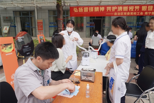 为深入弘扬雷锋精神,践行志愿服务理念,切实守护广大教职工及学员的眼健康,3月27日,南宁普瑞眼科医院党支部联合自治区党委党校工会,在党校总服务台广场开展“弘扬雷锋精神 共护清晰视界”主题义诊活动,将专业的眼科医疗服务送到校园一线。