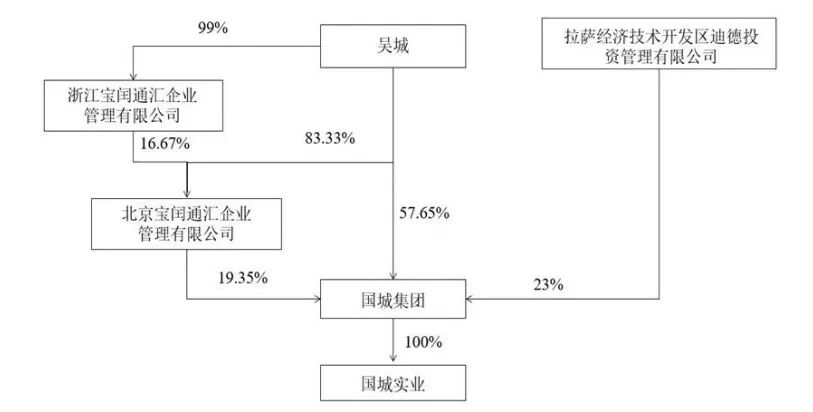 国城集团设立时,吴城个人出资35亿元持有公司75%,后续通过股权转让等方式其直接和间接持股比例上升至77%。