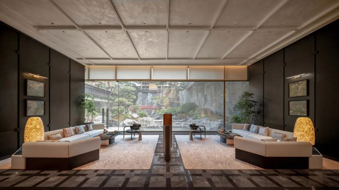 约63米宽、9.1米高的奢阔门头,与浙大同岁的百年罗汉松,开启五进归家序章;全球臻选近30种奢石铺陈公区,仅石材成本就超千万元。外立面首层采用石材与奢石,二层以上为四面大面铝板搭配巨幅玻璃窗框,典雅通透。