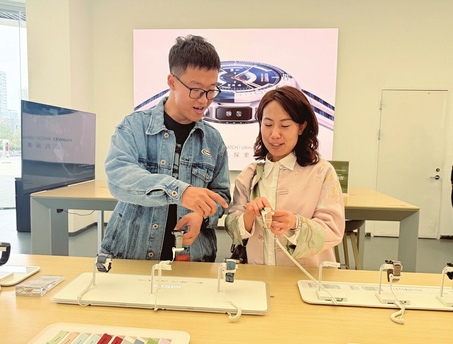 3月24日,走进省城迎泽区的一家华为授权体验店,智能手表、手环等可穿戴智能设备被摆放在显眼位置,几个年轻人正低头调试设备、询问功能,工作人员穿梭其间,耐心解答疑问,同时熟练地帮助消费者核销新一轮“国补”消费券。
