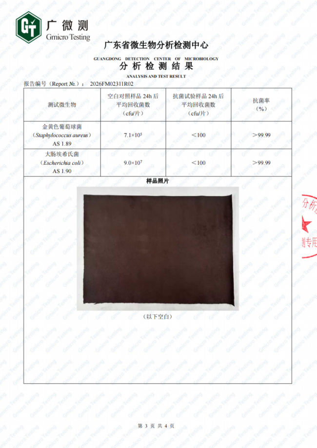 检测结果显示,中氪锌核技术为皮革提供了专业级健康防护能力,是功能性健康皮革的核心技术方案。