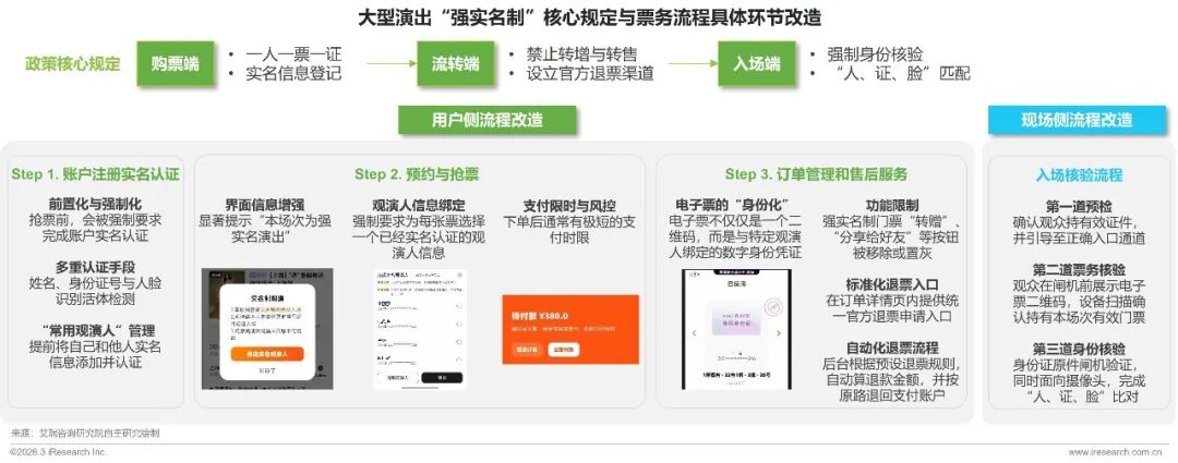 2023年由国家部委层面统一推行、并以“人证脸合一”为技术特征的监管模式,其严格程度和覆盖广度前所未有,构成了当前票务市场的基本准测。监管政策构建了一个覆盖“购票-持有-入场”全生命周期的闭环管理体系,面对强实名制的强执行要求,票务平台作为技术承载方和流程实现方,进行了一场自上而下、由内到外的系统性变革。其改造策略的核心,是从过去以“票”为中心的交易模式,彻底转向以“身份”为中心的服务与核验模式。