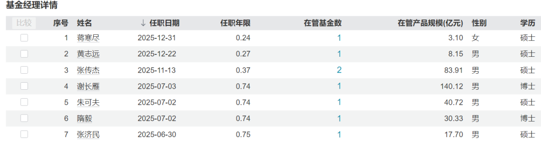 能够看到,兴证全球基金所有新聘基金经理均不独立管理产品,而是作为“副手”与资深经理共管。这种机制既能平滑新人经验不足带来的净值波动风险,又能为老将的逐步退出供缓冲,避免对基金规模造成剧烈冲击。