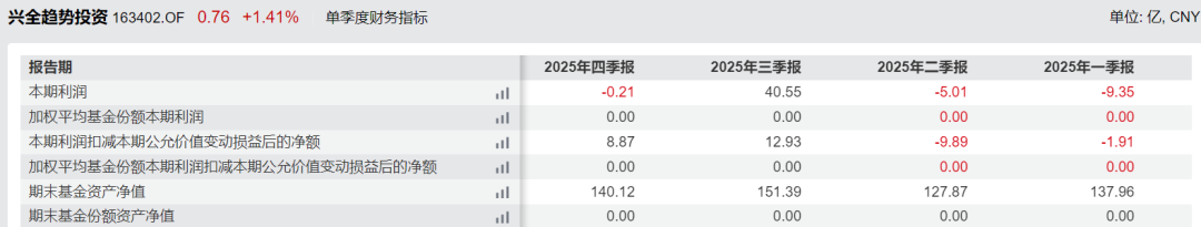 2022年至2024年,兴全合衡利润总额分别为-5.32亿、-10.04亿、2.95亿,2025年上半年利润2.31亿。从2025年三、四季度报告看,两个季度利润分别为9.22亿元、-3.21亿元。