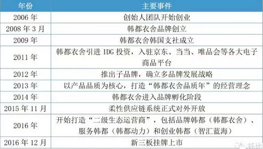 韩都衣舍电子商务集团股份有限公司(以下简称“韩都衣舍”)是中国最大的互联网品牌生态运营集团之一。韩都衣舍品牌创立于2008年,公司主要从事自有品牌互联网快时尚服饰的销售,同时为其他品牌提供电商销售运营服务。2016年7月,韩都衣舍获批成为互联网服饰品牌第一股,股票代码838711。