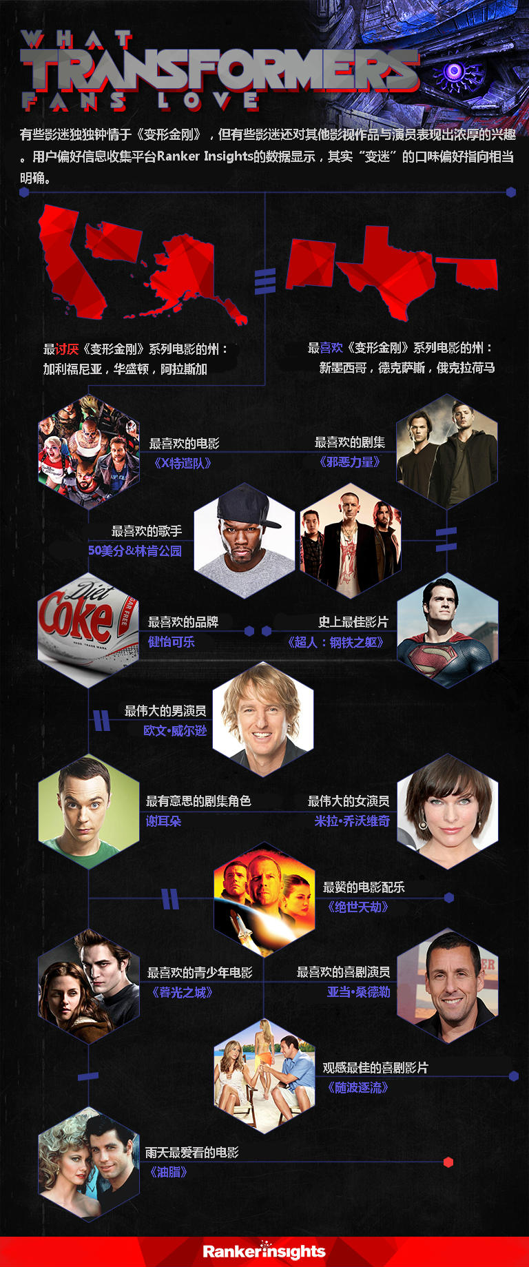 为了探讨这个问题,用户偏好信息收集平台Ranker Insights的研究小组对那些把《变形金刚》系列电影列为最爱的人群进行了观察。