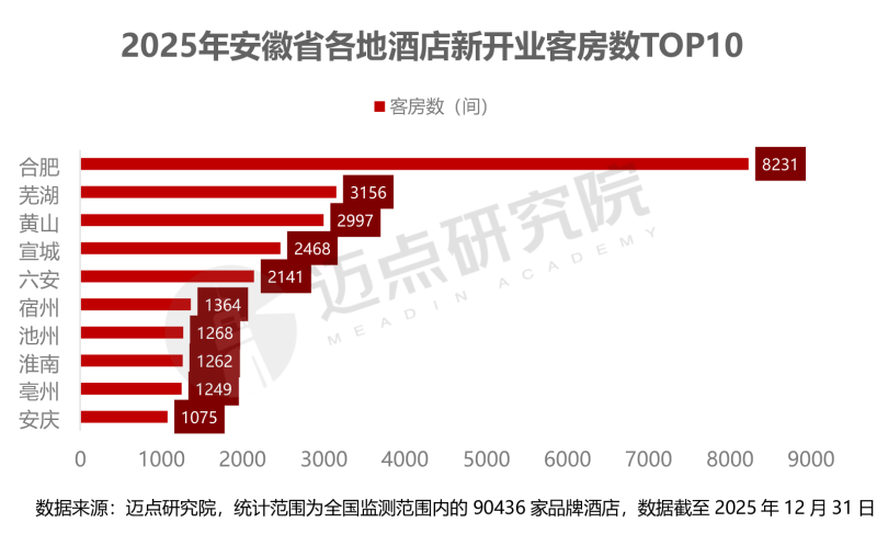 整体来看,安徽酒店市场既保持了合肥一极独大的核心特征,又通过黄山、芜湖等文旅与产业节点城市的协同发展,实现了区域供给的均衡扩容,为酒店市场从流量向留量转化奠定坚实基础。