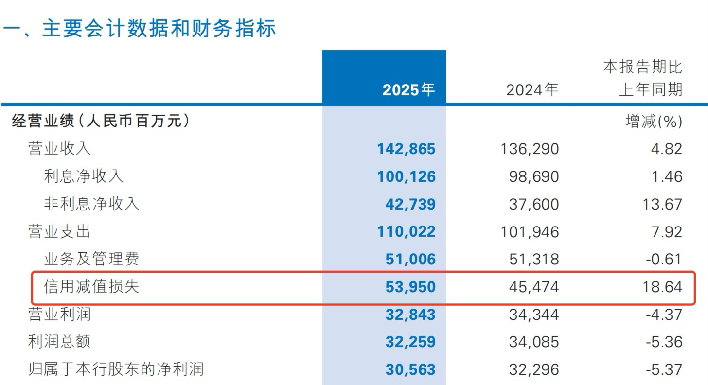 财报数据显示,2025年民生银行信用减值损失539.5亿元,相比上年增长18.64%,同比增加约85亿元。