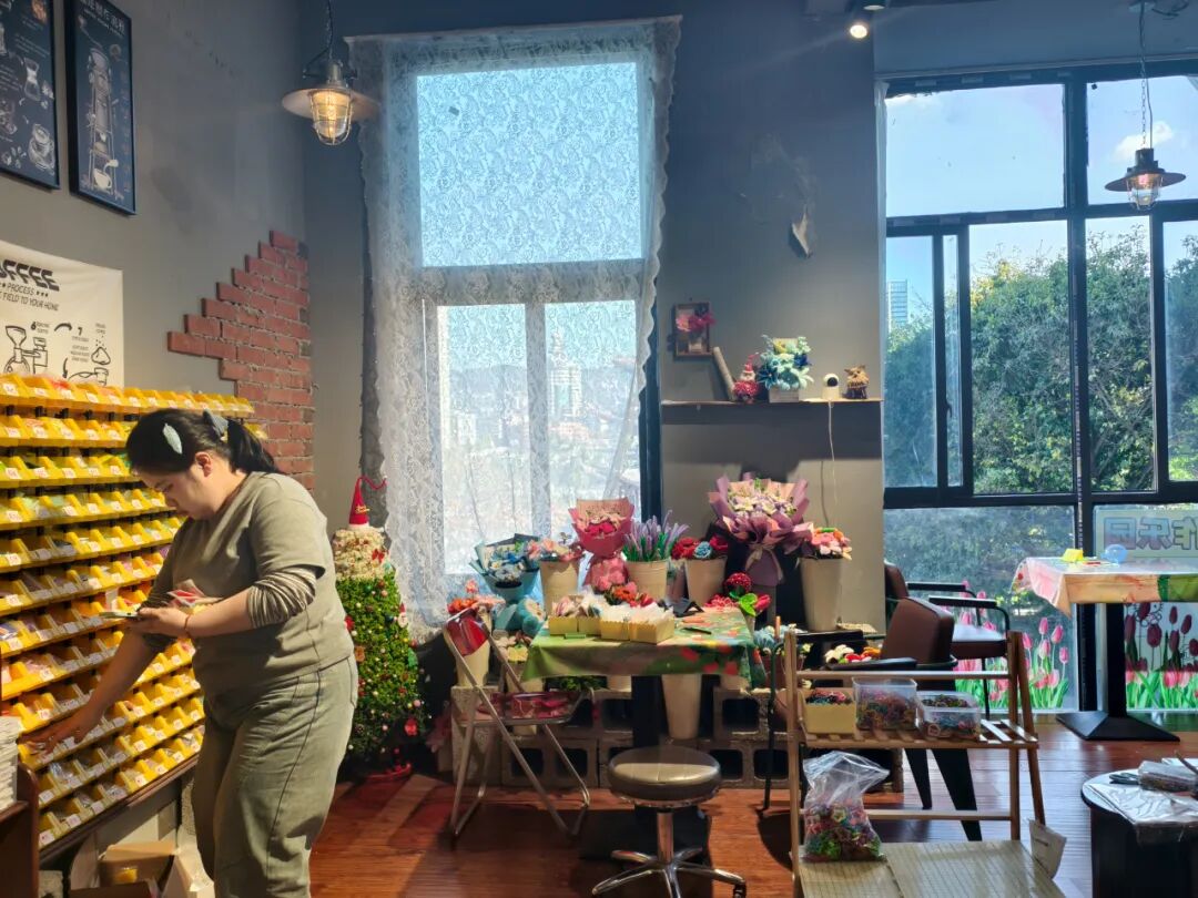 小伟的转型比俊翔更被动。他在宜宾合江门景区附近与人合伙开了一家咖啡店,但是合伙人资金周转失败,他只能独自接下这家店。起初,他硬着头皮做咖啡,但单一品类实在卷不动,他决定赌一把,发展拼豆。三个月后,经营流水告诉他,赌对了。这项手工至少为店里带来了稳定的人流,他对此的感受是:“站在风口上,猪都可以飞。”
