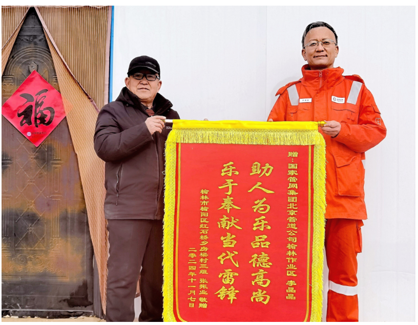 榆林作业区打造“沙柳红·心动力”品牌,提炼出“向下扎根、向上生长”的沙柳精神,员工们如沙柳般扎根毛乌素沙漠,用日常巡护践行保供誓言,用坚守诠释责任担当。“沙柳红”志愿服务队队员李晶晶,20多年来巡护管道里程超过50万公里,所巡管道实现安全“六零”目标——被媒体视为巡线英雄并被国内外媒体大面积报道,他以自己微薄的收入帮扶沿线群众,积极参与公益事业、捐资助学、资助村民和同事、救死扶伤、关心关爱留守老人和儿童,被沿线群众称为“李晶晶就是咱们中国今天的活雷锋”,榆林“最美老兵”张振业送给他一面“当代雷锋”锦旗,唱响了一曲企地共建确保管道安全的时代赞歌,用实际行动生动诠释了“京旗红”的精神内涵。