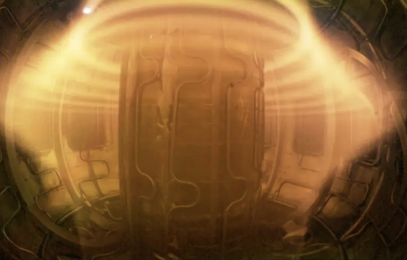 托卡马克被誉为“人造太阳”,其装置的中央是一个环形的真空室,外面缠绕着线圈,在通电时内部会产生巨大的螺旋形磁场,将其中的等离子体加热到很高的温度,以达到核聚变的目的。