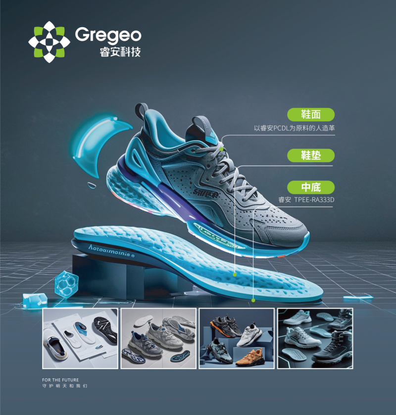 在汽车工业与高端鞋材领域,睿安集团研发的TPEE等高性能工程塑料,凭借轻量化、高回弹、耐低温、长效稳定的特性,以材料创新助力下游产业节能降碳。在汽车领域,广泛应用于汽车防尘罩、密封件、内饰、管路系统等核心部件;在高端鞋材领域,TPEE材料凭借出色回弹性与轻量化优势,可用于鞋面、中底、鞋垫等核心部位,为高端鞋品提供绿色高性能材料解决方案。从绿色农业到汽车工业、高端鞋材,从消费品包装到3D打印、5G通讯、现代医学等多元场景,睿安以一颗新材料“小颗粒”为支点,串联起多个庞大产业赛道,构建起技术研发、规模化生产、全场景应用、环境与社会价值共创的良性循环系统。