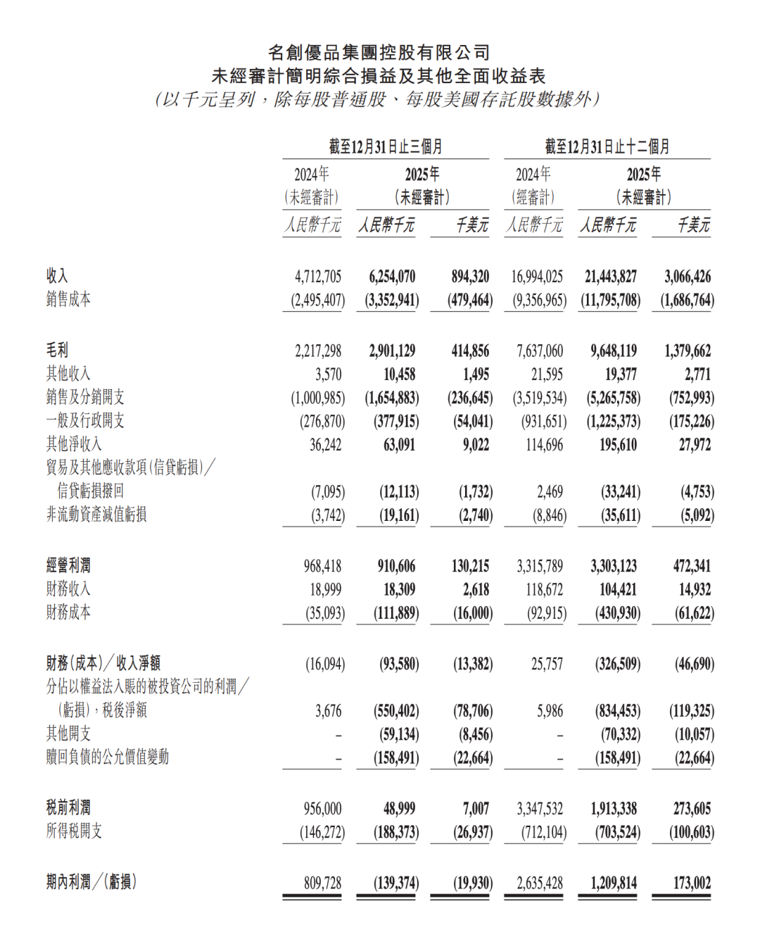 名创优品 2025 年第四季度及全年财报