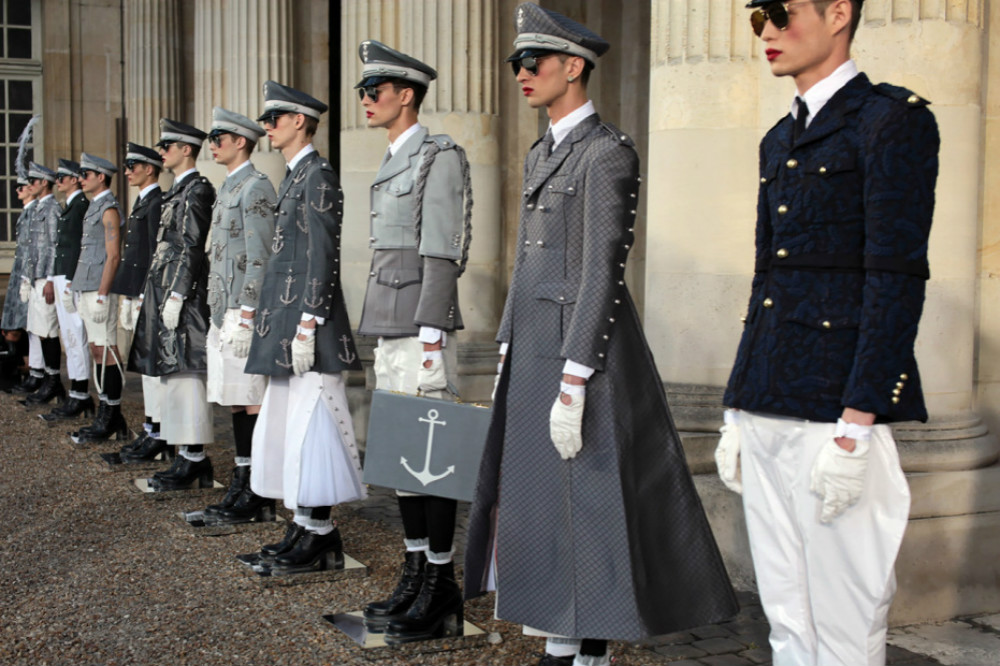 不过,《纽约时报》没提到的,是Thom Browne身上所暗藏的那份古典上流社会的气质。他是个每天早上要跑8英里且每天吃同样早餐的“模范生”,会在失序的环境中感到不适,但需要注意的是,美国从不是一个主张遵循规则的社会,而纽约也不是一个酒香不怕巷子深的地方,这里除了拿作品说话,还依赖于人脉网。