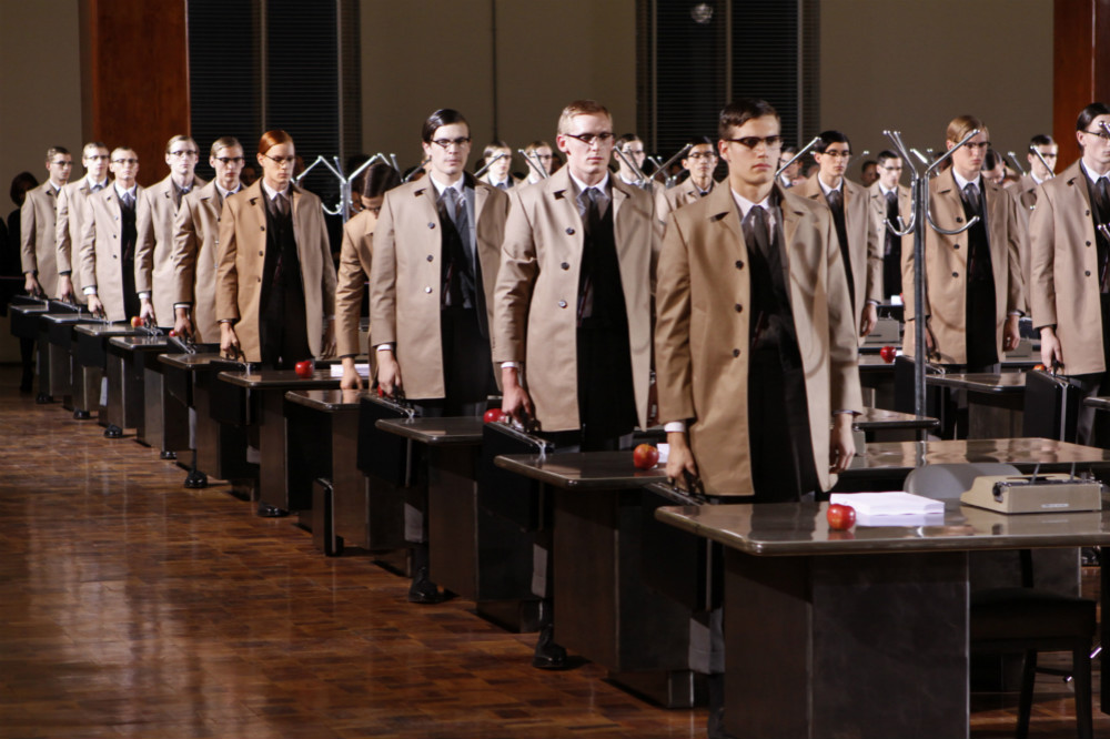 生长于天主教家庭的Browne大概有轻微的禁欲倾向,每当看到他设计中的三道杠,那就像一个“约法三章”。其实他并非不懂得时尚业的运行法则,但他强迫自己不跟从主流,这导致许多事情有点拧巴,“我对’酷’从不感兴趣,但是我知道别人会。”他说。