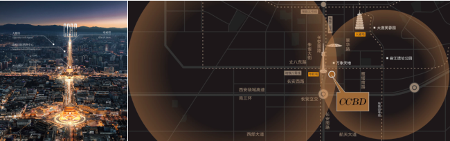 地段,是顶豪恒产穿越周期的第一标尺,更是西安塔尖圈层置业的底层逻辑。CCBD之所以能成为市场共识的顶豪之选,核心就在于它对“长安中轴千年龙脉”+“曲江核心富人区”两大不可再生资源的极致占有。