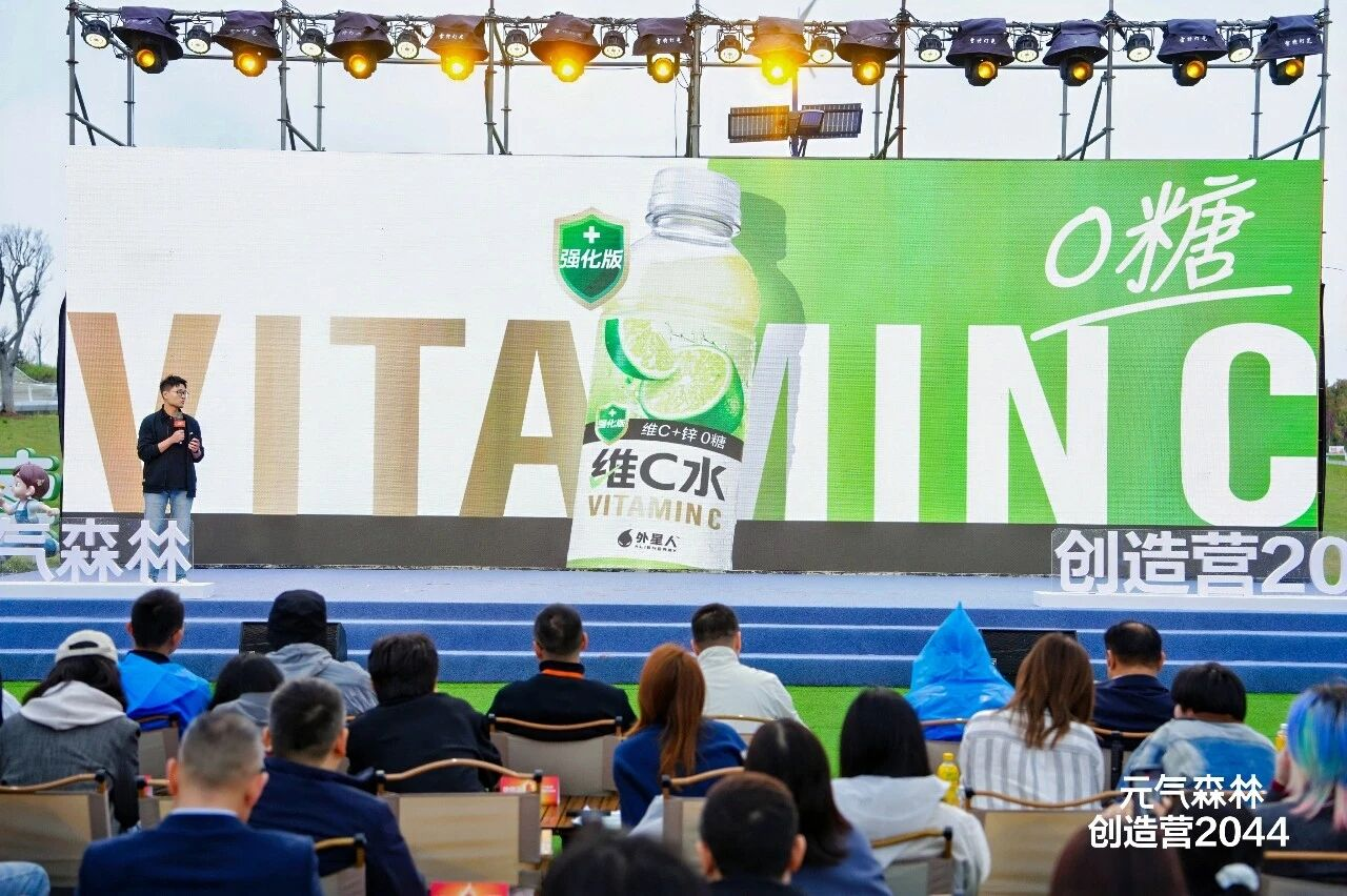 「创造营2044」上,营养素饮料方向,元气森林又推出了“元气森林newater-维生素水”,采用青瓜柠檬风味和维生素组合,通过“比白水多一点,比普通饮料少一点负担”的“水替”概念,希望成为消费者常伴手边的新选择。已经较为成熟的维B水、维C水也迎来了版本升级,推出了全新外星人0糖强化版VC水,其采用0糖配方、小青柠风味,搭配 VC 加锌的营养组合,把这件事变得更简单,顺手就能喝,清爽轻负担。